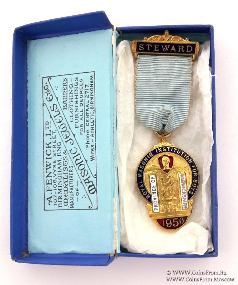 Знак RMIB 1955. STEWARD ROYAL MASONIC INSTITUTION FOR BOYS. – Королевский Масонский институт для мальчиков.