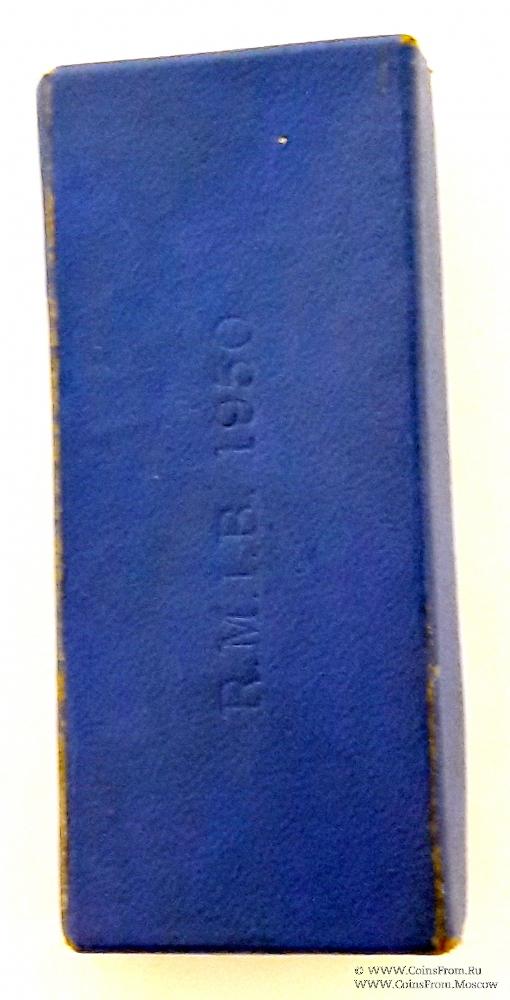 Верхняя колодка синей эмали с надписью STEWARD и булавкой для ношения с обратной стороны. Над надписью в орнаменте наугольник и циркуль. В низу лента непосредственно, без металлической колодки, соединена с кольцом знака. Знак в "родной" коробке.