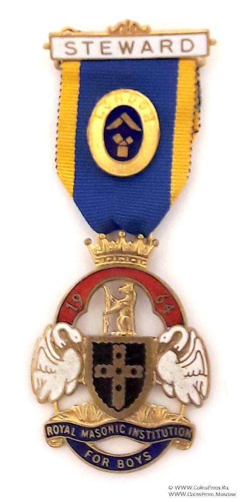 Знак RMIB 1964. STEWARD ROYAL MASONIC INSTITUTION FOR BOYS. – Королевский Масонский институт для мальчиков.