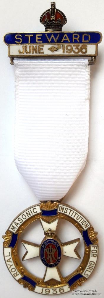 Цвет ленты белый. Верхняя колодка сине-белой эмали с надписью STEWARD сверху и датой июнь 1936 снизу. Наверху корона и булавка для ношения с обратной стороны. В низу лента непосредственно, без металлической колодки, соединена с кольцом знака.