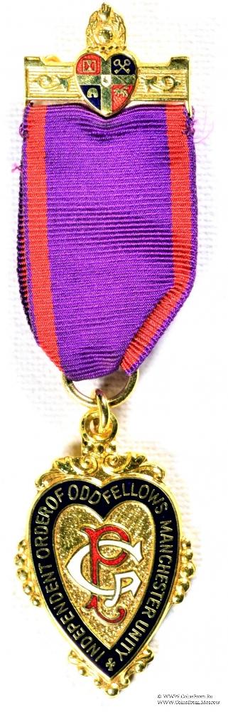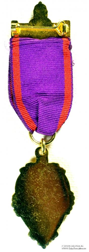 Знак в виде сердца основанного полосой синей эмали с названием Ордена. В нижней части начало и конец наименования Ордена разделены крестом. По центру на золотом фоне вязь из букв PG (Past Grand) - отслужившему Гранду. Цвет ленты синий Фиолетовый) с красными полосами по бокам.