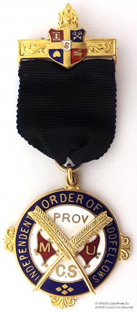 Знак круглой формы. По кругу название Ордена. В центре на белой эмали провинция CS и два перекрещенных пера - символ Секретаря. Между перьями на красном фоне буквы М.U. (Manchester Unity– манчестерский союз). Цвет ленты чёрный. Верхняя колодка металлическая пластина с булавкой для носки и гербом в виде щита с изображёнными символами Ордена, над которым земной шар, и в ладони сердце – символы Ордена. В низу лента непосредственно продета в кольцо знака.