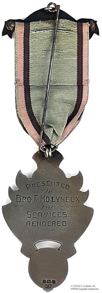 РЕВЕРС: клейма: CU, якорь, лев, G (1931). Гравировка: Presented to Bro. F. Molyneux for Services Rendered