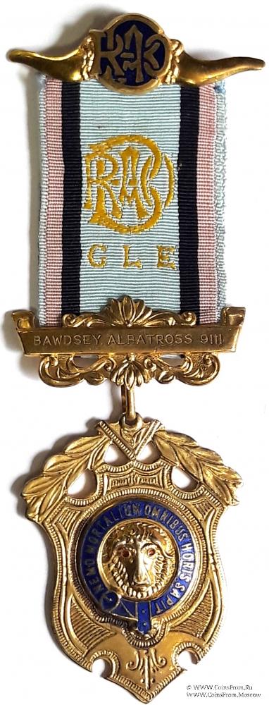 Колодки/медальон: верхняя колодка в виде рогов буйвола с аббревиатурой Ордена в центре. Нижняя колодка выполнена в виде ленты на фоне стилизованного орнамента с наименованием и номером Ложи. (Bawdsey Albatross 911)