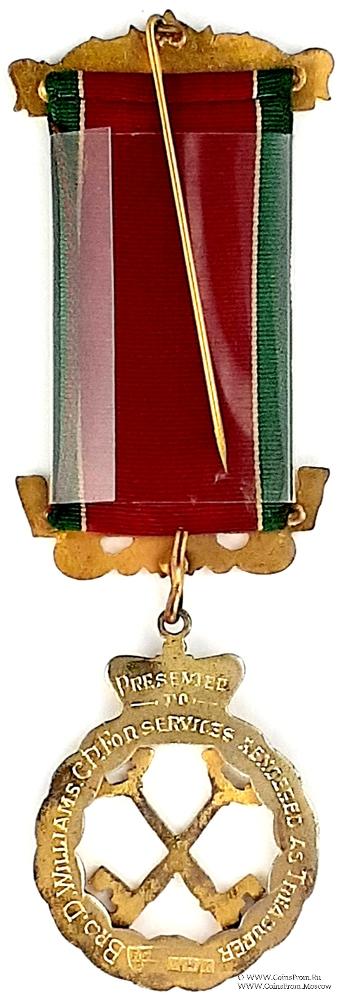 РЕВЕРС: гравировка: Presented to Bro. D. Williams CP for Services Rendered as Treasurer (за службу казначеем). Клейма: FCP якорь. Лев, А (1975).