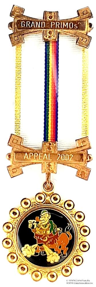 КОЛОДКИ/МЕДАЛЬОН: верхняя и нижняя одинаковые по форме в виде стилизованной ленты с надписью: GRAND PRIMOs и Appeal 2002