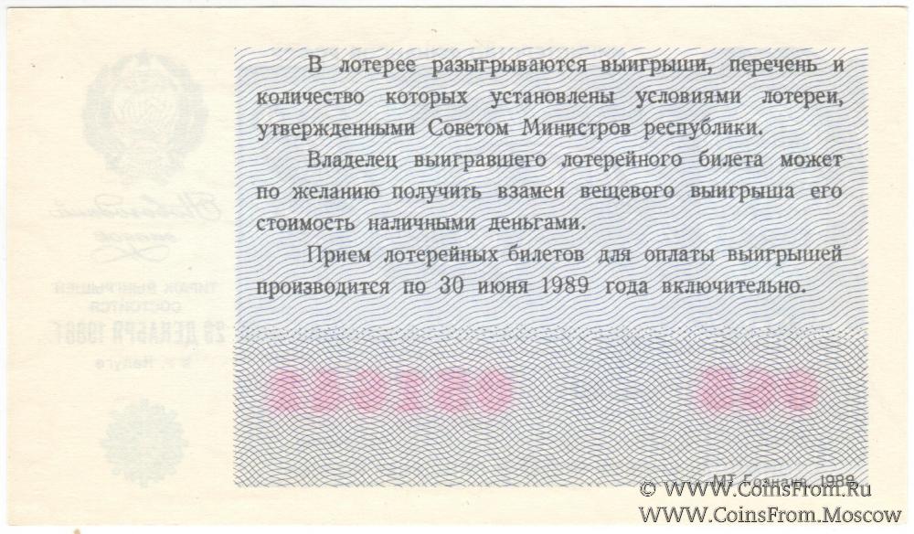 Билет. Новогодний выпуск. Тираж в г. Калуге. Денежно-вещевая лотерея 1988 г.