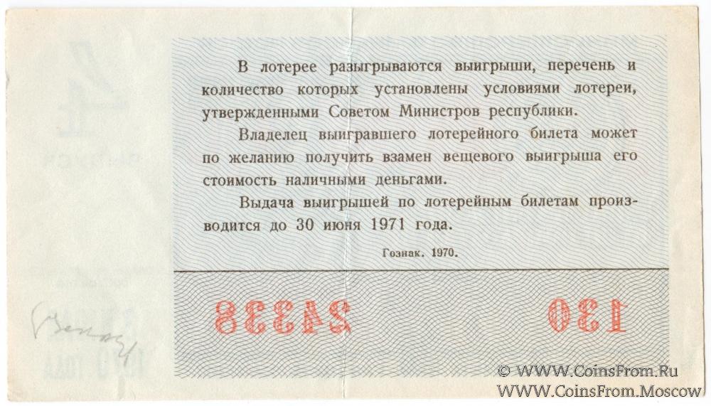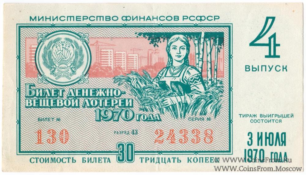 Билет. Выпуск 4. Денежно-вещевая лотерея 1970 г.