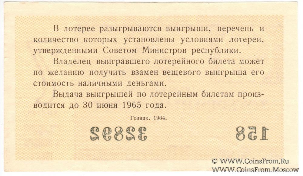 Лотерейный билет. Выпуск 7. Денежно-вещевая лотерея 1964 г.