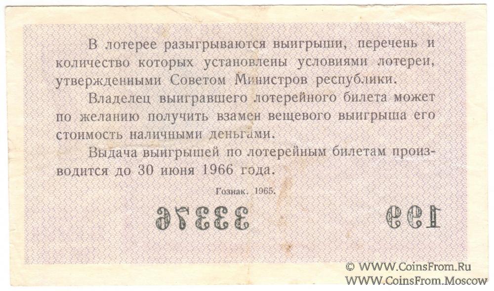 Лотерейный билет. Выпуск 7. Денежно-вещевая лотерея 1965 г.