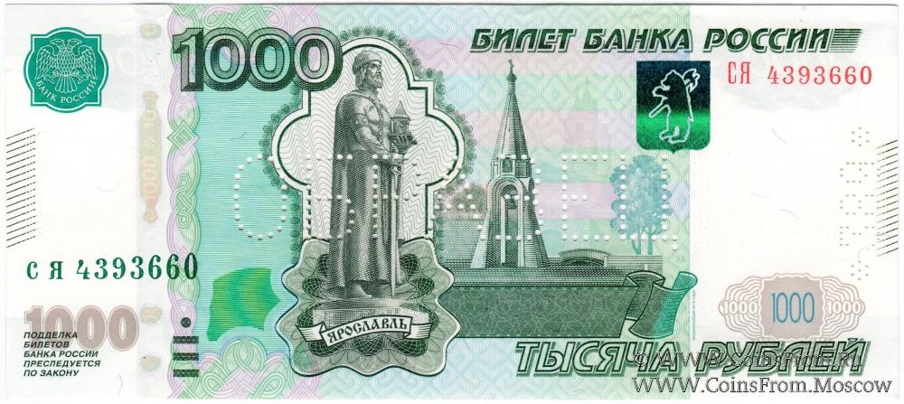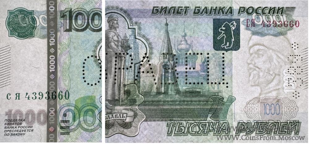 1.000 рублей 1997 (2010) г. ОБРАЗЕЦ двусторонний