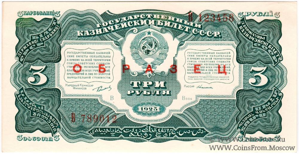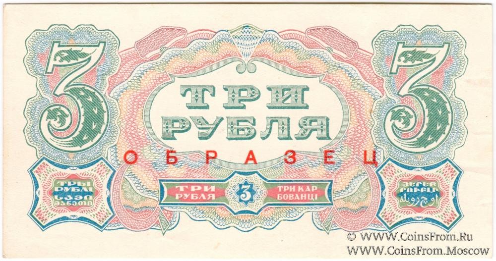 3 рубля 1925 г. ОБРАЗЕЦ (аверс и реверс отдельно). 1-й выпуск.
