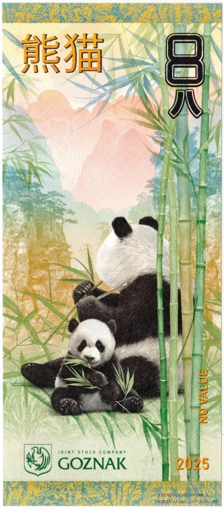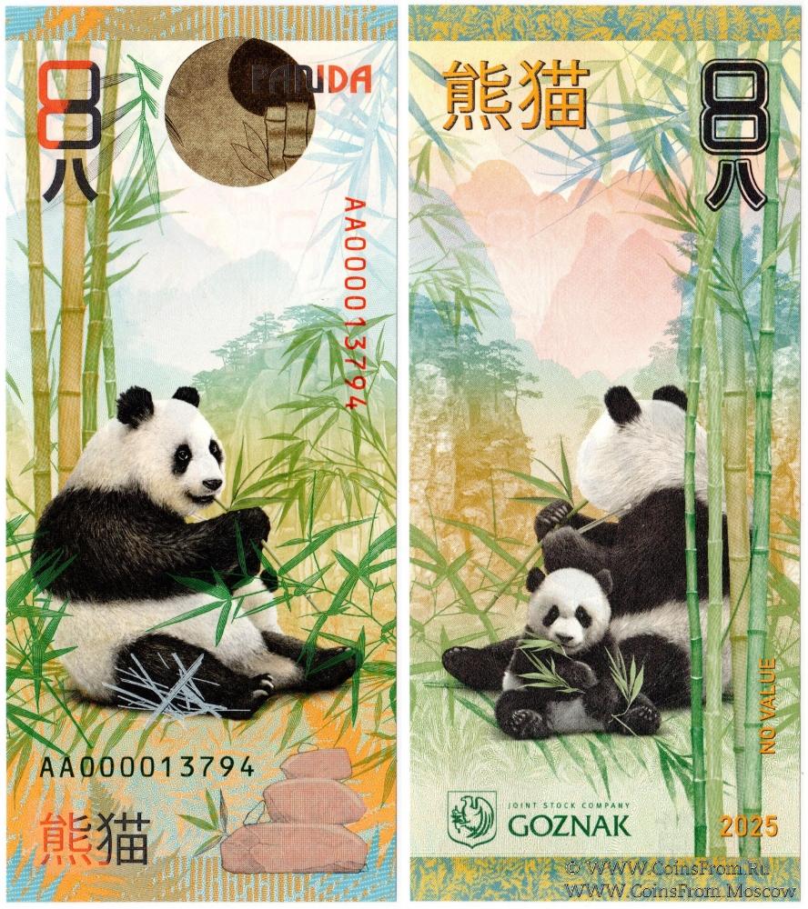 Презентационная банкнота. ГОЗНАК 2025 г. "Панда". Серия АА. Водяной знак - "панда".