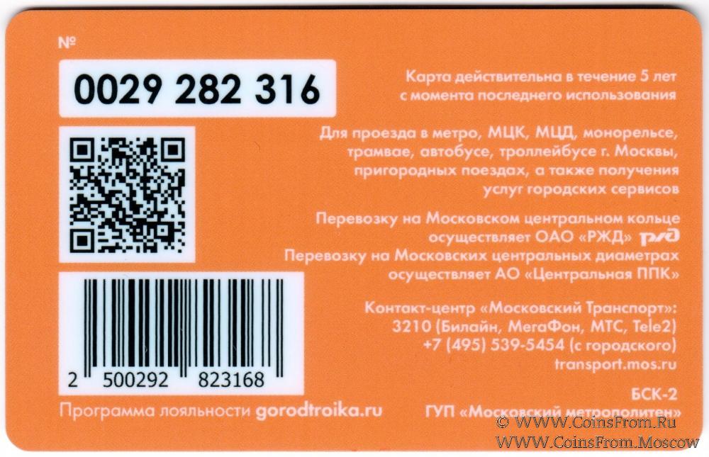 Карта залоговая (0029) действительна в течение 5 лет с момента последнего использования. Для проезда в метро, МЦК, МЦД, монорельсе, трамвае, автобусе, троллейбусе г. Москвы, пригородных поездах, а также получения услуг городских сервисов.