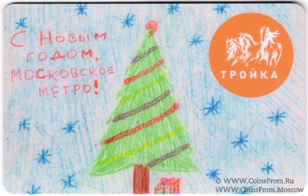 Электронная транспортная карта "Тройка". Размер: 85,5 * 54 мм. Карта "Тройка" из серии "Детские рисунки", состоящей из 13 разновидностей. Каждый вид реализовывался на отдельной линии в кассах станций метро и автоматах по продаже билетов. Вариант 8 (реализация на Люблинско-Дмитровской линии).