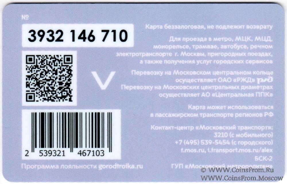 Карта беззалоговая, не подлежит возврату. Для проезда в метро, МЦК, МЦД, монорельсе, трамвае, автобусе г. Москвы, пригородных поездах, а также получения услуг городских сервисов.