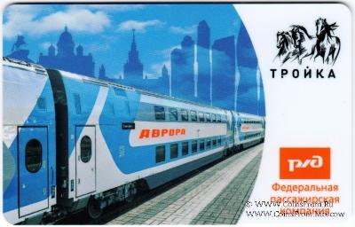 Выпуск 8 (24.11.2024 г.) карта "Тройка" в серии с рисунками фирменных поездов (скоростной фирменный поезд "Аврора"). Реализация – с февраля 2025 года в поездах дальнего следования ФПК, отправляющихся в Москву или из Москвы.
