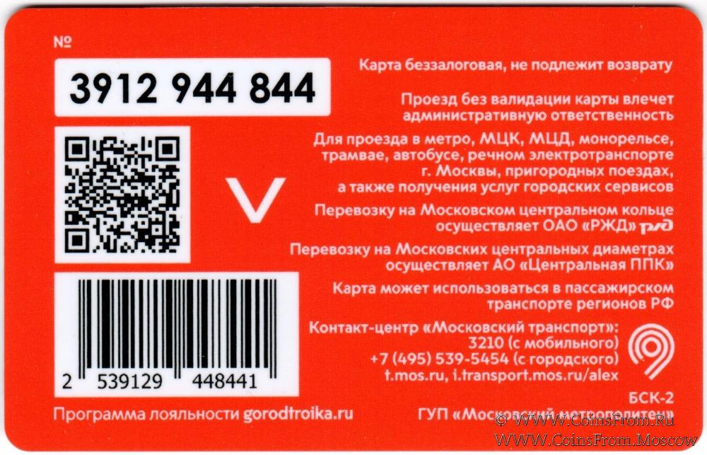 Карта беззалоговая (3912), не подлежит возврату. Проезд без валидации карты влечет административную ответственность. Для проезда в метро, МЦК, МЦД, монорельсе, трамвае, автобусе, речном электротранспорте г. Москвы, пригородных поездах, а также получения услуг городских сервисов.