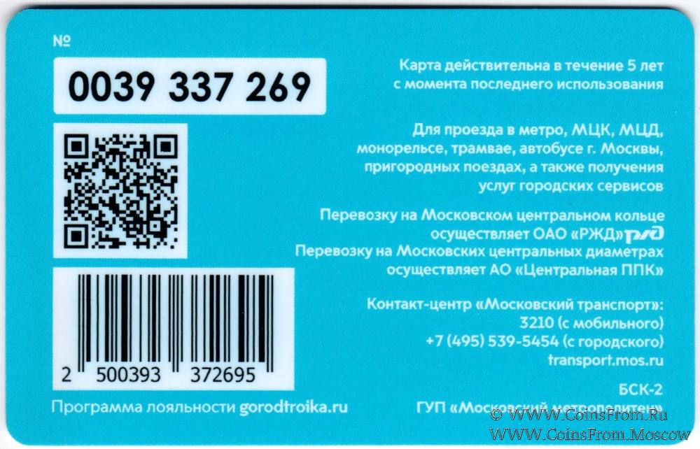 Карта залоговая (0039). Для проезда в метро, МЦК, МЦД, монорельсе, трамвае, автобусе г. Москвы, пригородных поездах, а также получения услуг городских сервисов.