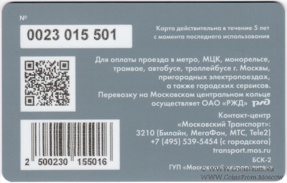 Карта залоговая (0023), действительна в течение 5 лет с момента последнего использования. Для оплаты проезда в метро, МЦК, монорельсе, трамвае, автобусе, троллейбусе г. Москвы, пригородных электропоездах, а также городских сервисов.