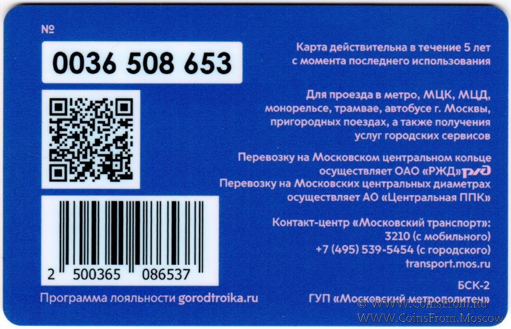 Карта залоговая (0036). Для проезда в метро, МЦК, МЦД, монорельсе, трамвае, автобусе г. Москвы, пригородных поездах, а также получения услуг городских сервисов.