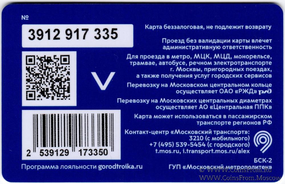 Карта беззалоговая (3912), не подлежит возврату. Проезд без валидации карты влечет административную ответственность. Для проезда в метро, МЦК, МЦД, монорельсе, трамвае, автобусе, речном электротранспорте г. Москвы, пригородных поездах, а также получения услуг городских сервисов.