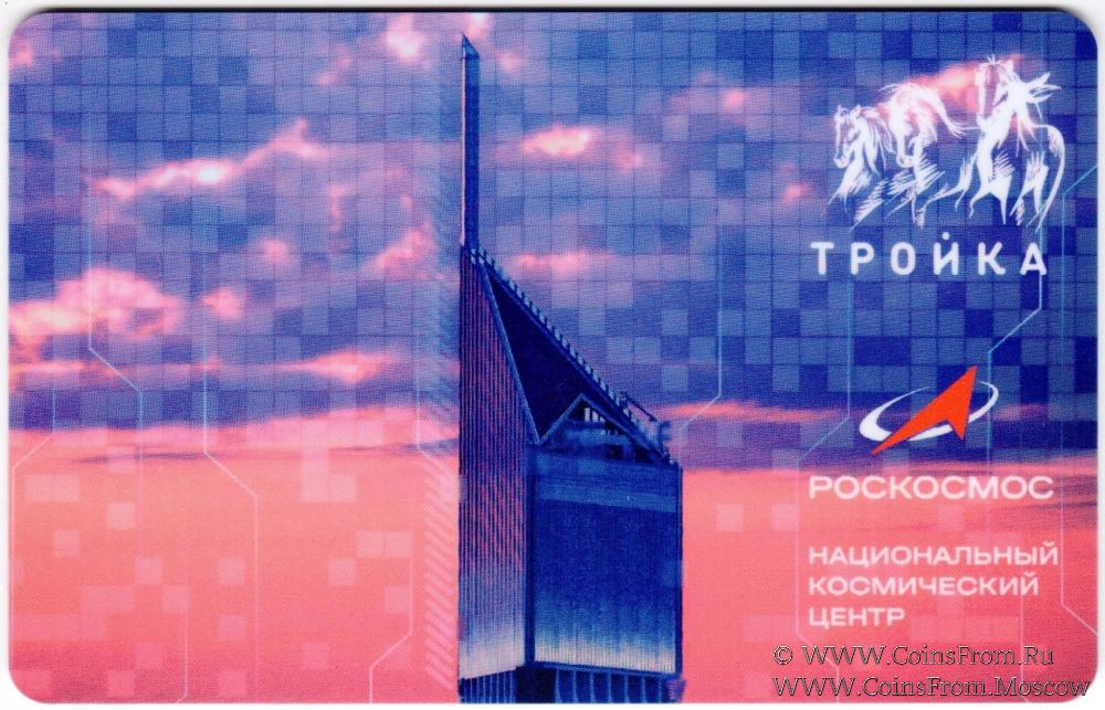 Электронная транспортная карта "Тройка". Размер: 85,5 * 54 мм. Карта "Тройка", посвящённая открытию Национального космического центра.