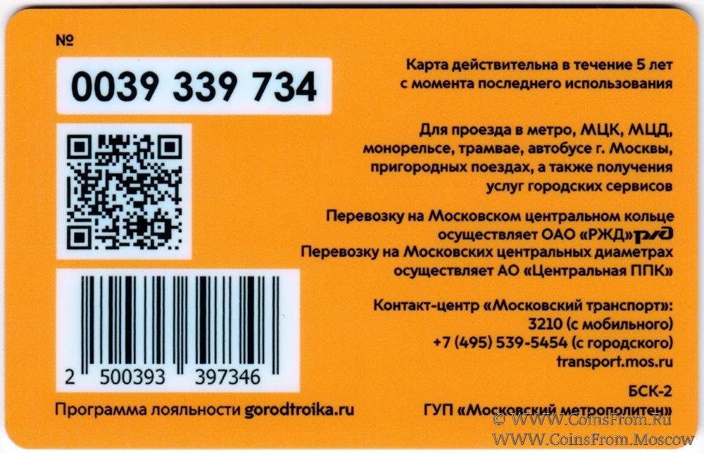 Карта залоговая (0039) действительна в течение 5 лет с момента последнего использования. Для проезда в метро, МЦК, МЦД, монорельсе, трамвае, автобусе г. Москвы, пригородных поездах, а также получения услуг городских сервисов.