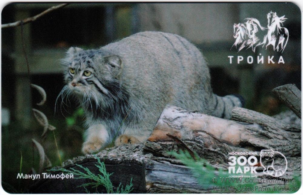 Электронная транспортная карта "Тройка". Размер: 85,5 * 54 мм. Карта "Тройка" посвящена символу Московского зоопарка — манулу Тимофею. Серия из двух карт (вариант 2).