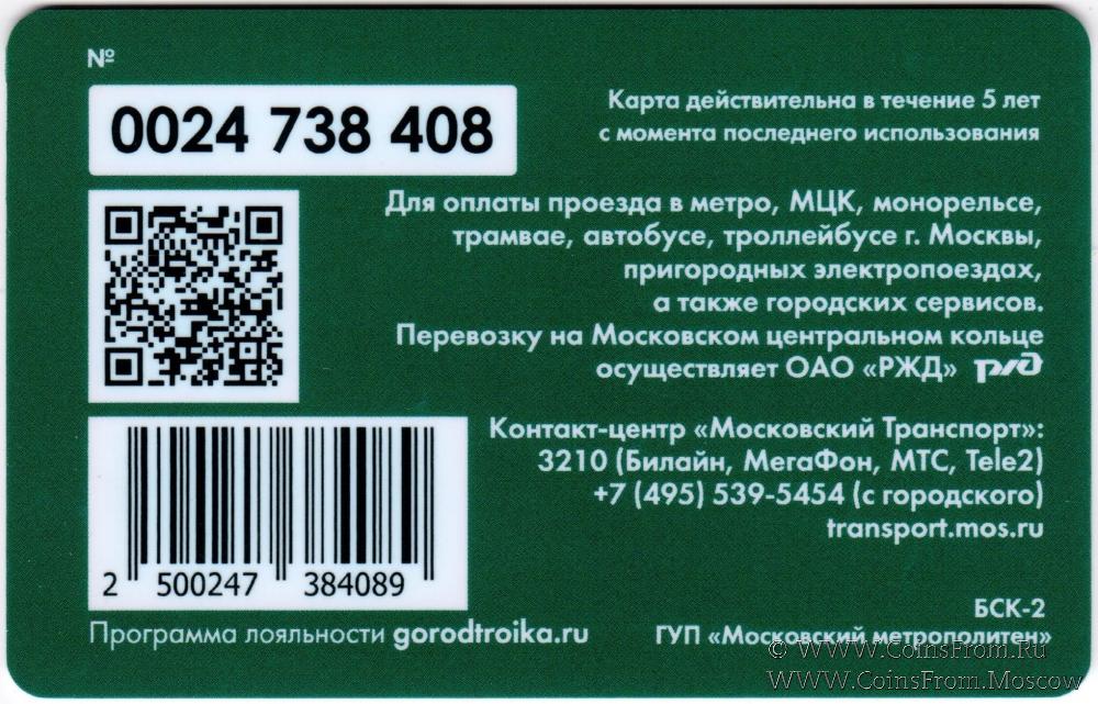 Карта залоговая (0024), действительна в течение 5 лет с момента последнего использования. Для оплаты проезда в метро, МЦК, монорельсе, трамвае, автобусе, троллейбусе г. Москвы, пригородных электропоездах, а также городских сервисов.