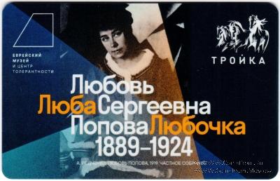 Электронная транспортная карта "Тройка". Размер: 85,5 * 54 мм. Карта "Тройка", посвящённая выставке "ЛЮБА, ЛЮБОЧКА. ЛЮБОВЬ СЕРГЕЕВНА ПОПОВА....