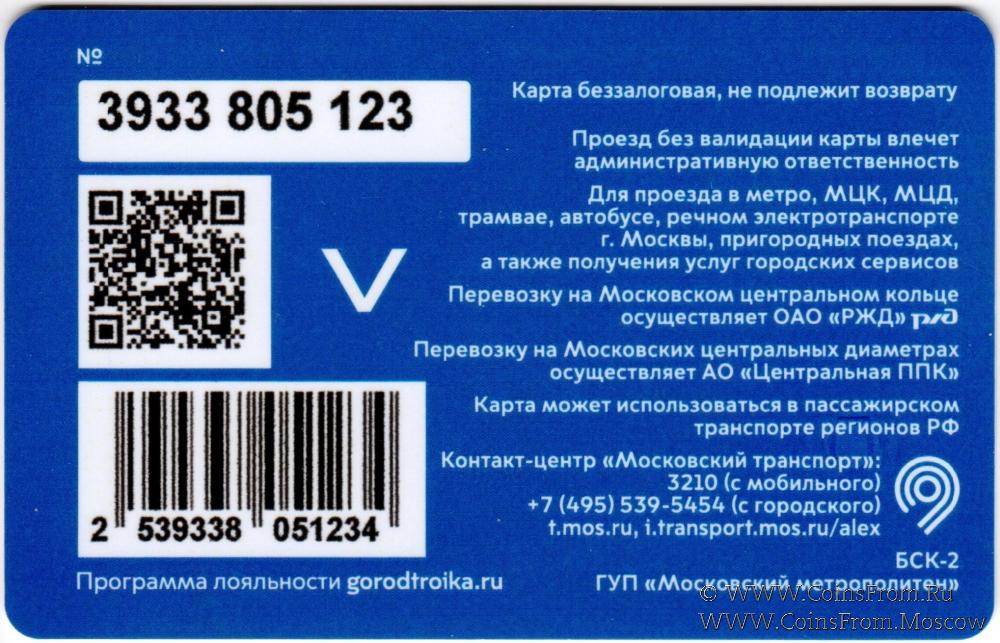 Карта подарочная (3933) беззалоговая, не подлежит возврату. Проезд без валидации карты влечет административную ответственность. Для проезда в метро, МЦК, МЦД, трамвае, автобусе, речном электротранспорте г. Москвы, пригородных поездах, а также получения услуг городских сервисов.