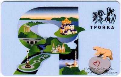 Электронная транспортная карта "Тройка". Размер: 85,5 * 54 мм. Карта "Тройка" с изображением символов города Ярославля в букве "Я".