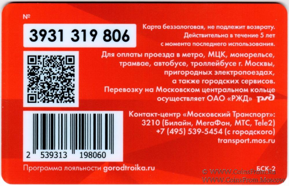 Карта сувенирная (3931) беззалоговая, не подлежит возврату. Для оплаты проезда в метро, МЦК, трамвае, автобусе, троллейбусе г. Москвы, пригородных электропоездах, а также городских сервисов.