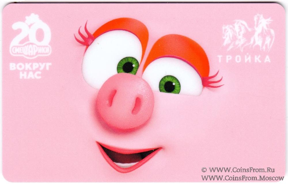 Карта "Тройка" с изображениями персонажей из мультсериала "Смешарики" (Нюша), посвященные 20-летию создания, приурочены ко Дню защиты детей (1 июня).