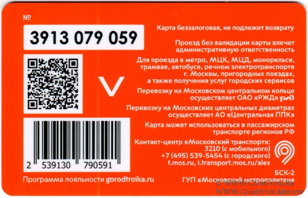 Карта беззалоговая (3913), не подлежит возврату. Проезд без валидации карты влечет административную ответственность. Для проезда в метро, МЦК, МЦД, монорельсе, трамвае, автобусе, речном электротранспоре г. Москвы, пригородных поездах, а также получения услуг городских сервисов.