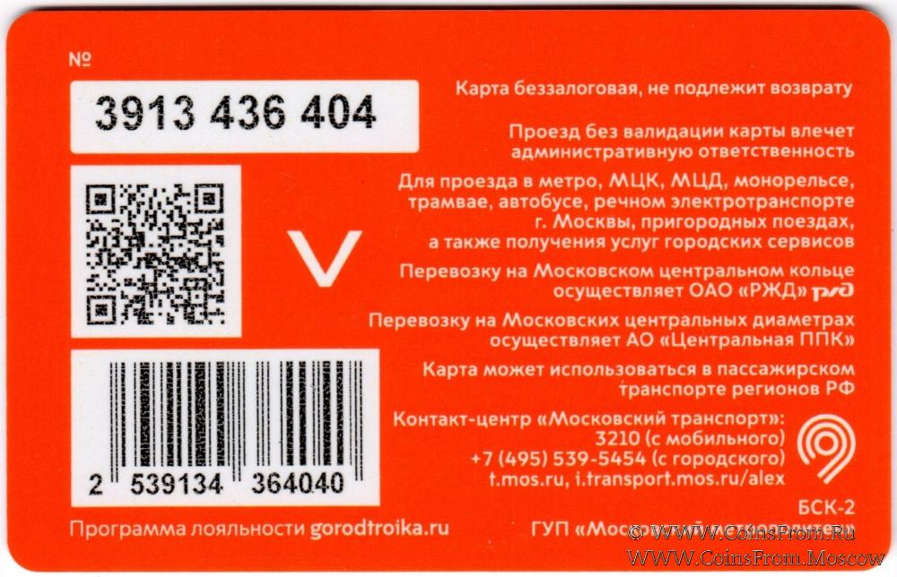 Карта сувенирная (3913) беззалоговая, не подлежит возврату. Проезд без валидации карты влечет административную ответственность. Для проезда в метро, МЦК, МЦД, монорельсе, трамвае, автобусе, речном электротранспорте г. Москвы, пригородных поездах, а также получения услуг городских сервисов.