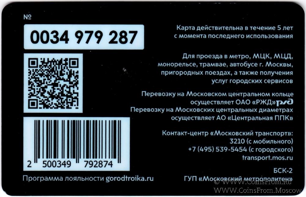 Карта залоговая (0034), действительна в течение 5 лет с момента последнего использования. Для проезда в метро, МЦК, МЦД, монорельсе, трамвае, автобусе г. Москвы, пригородных поездах, а также получения услуг городских сервисов.