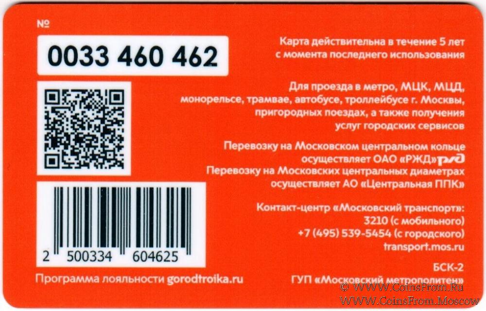 Карта залоговая (0033) действительна в течение 5 лет с момента последнего использования. Для проезда в метро, МЦК, МЦД, монорельсе, трамвае, автобусе, троллейбусе г. Москвы, пригородных поездах, а также получения услуг городских сервисов.